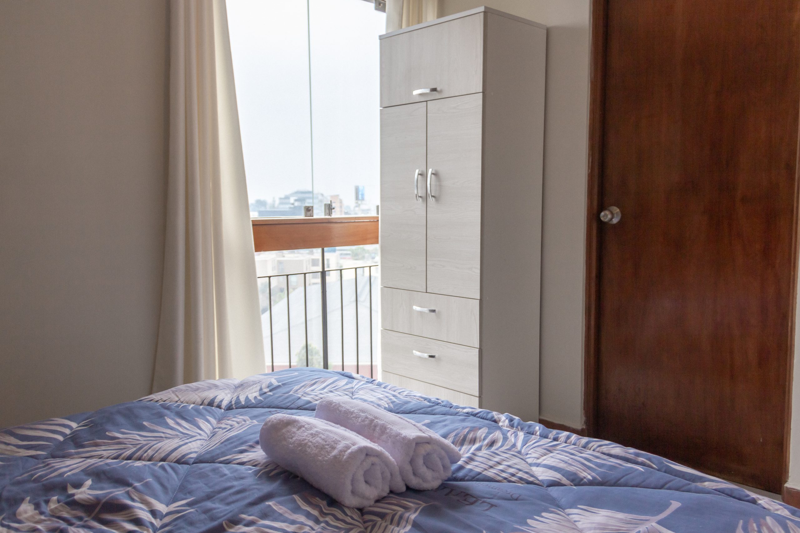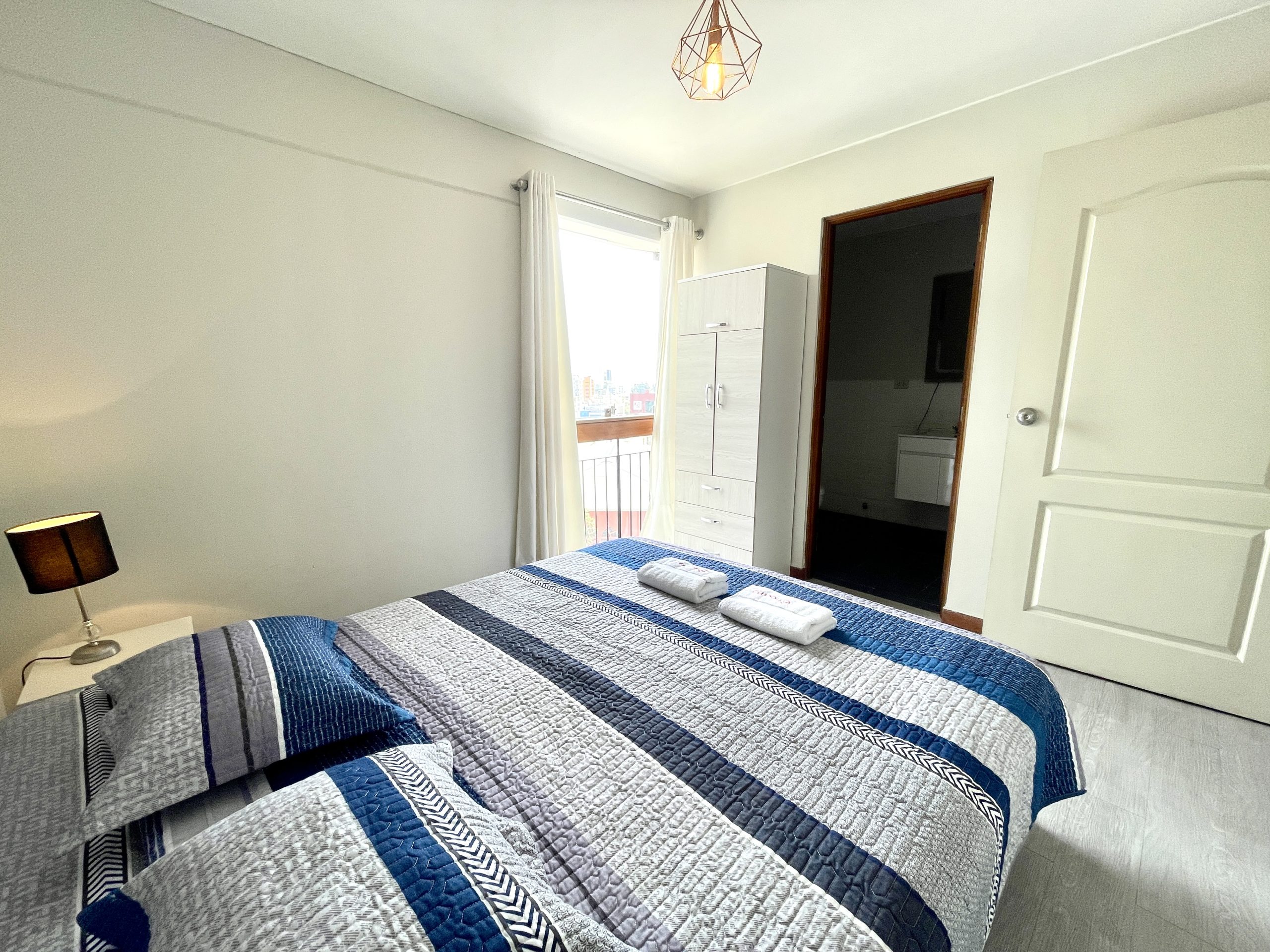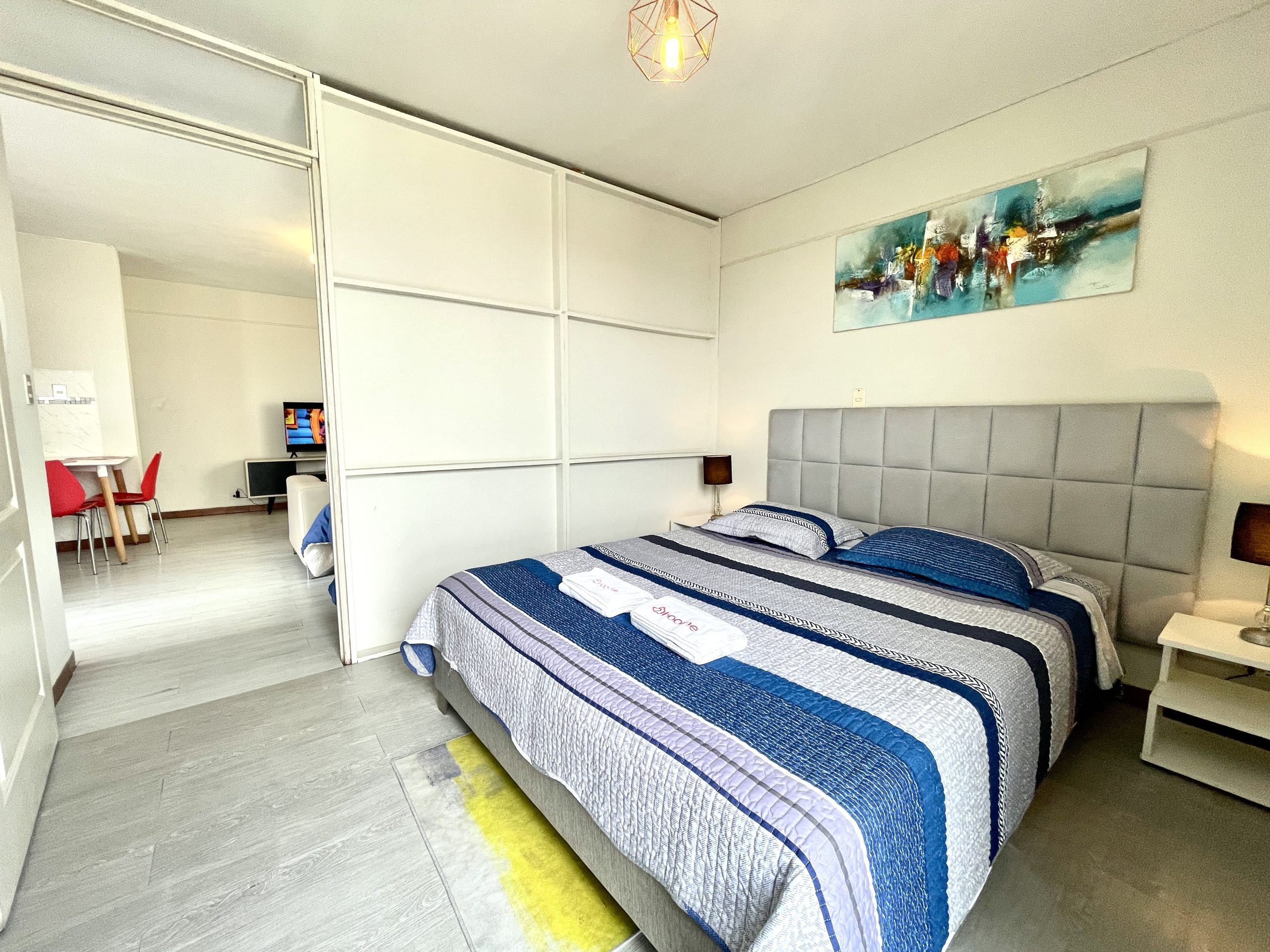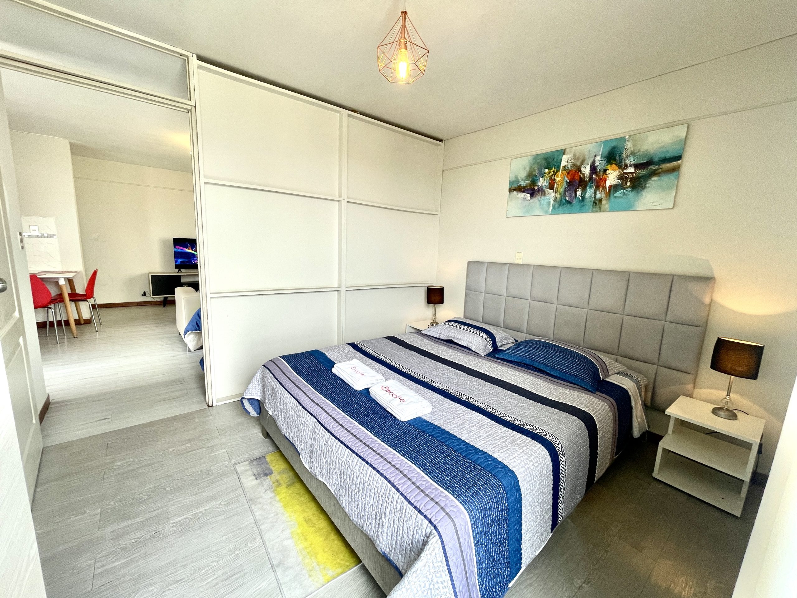 - Habitación: Cama queen y un ropero para tus pertenencias.