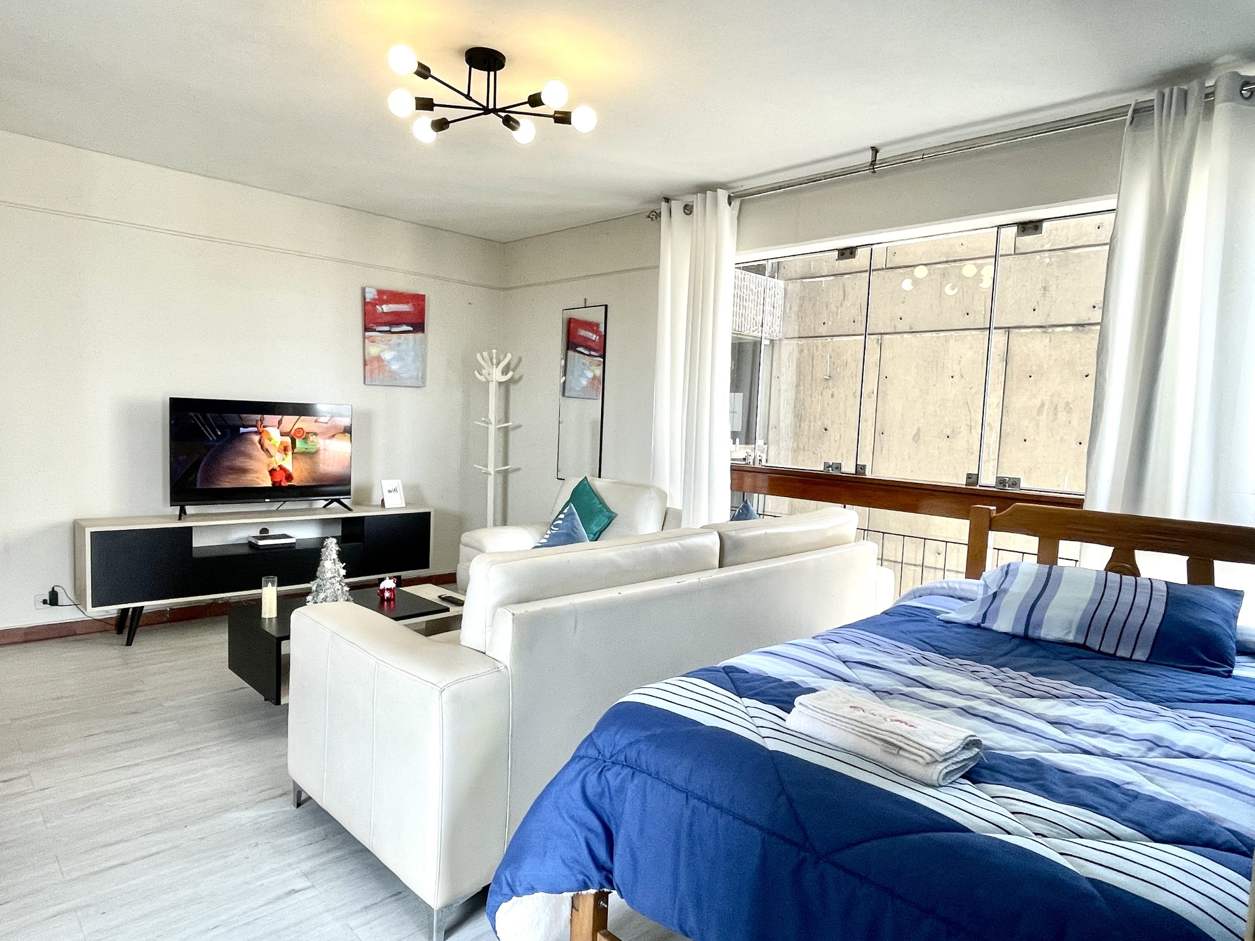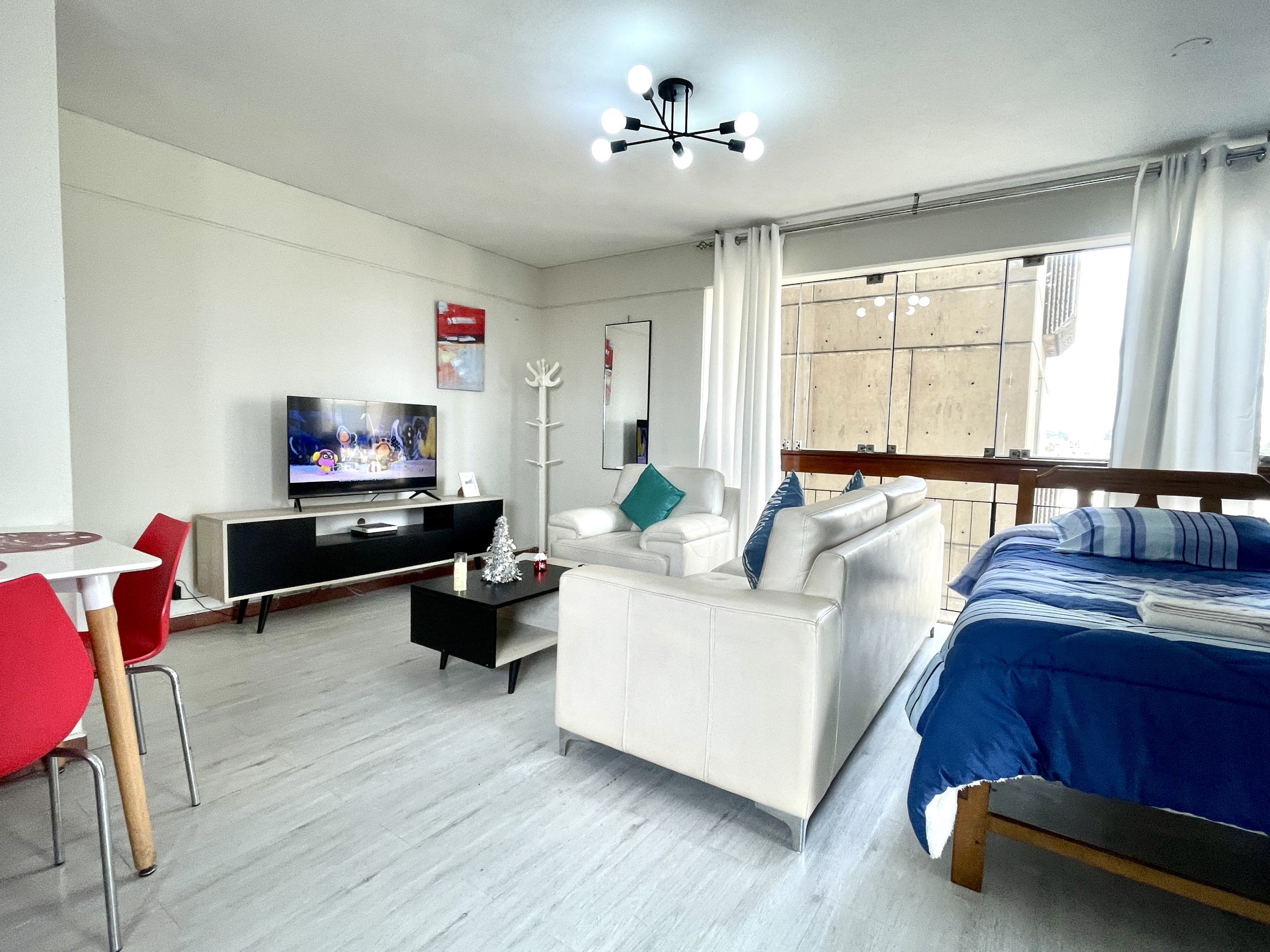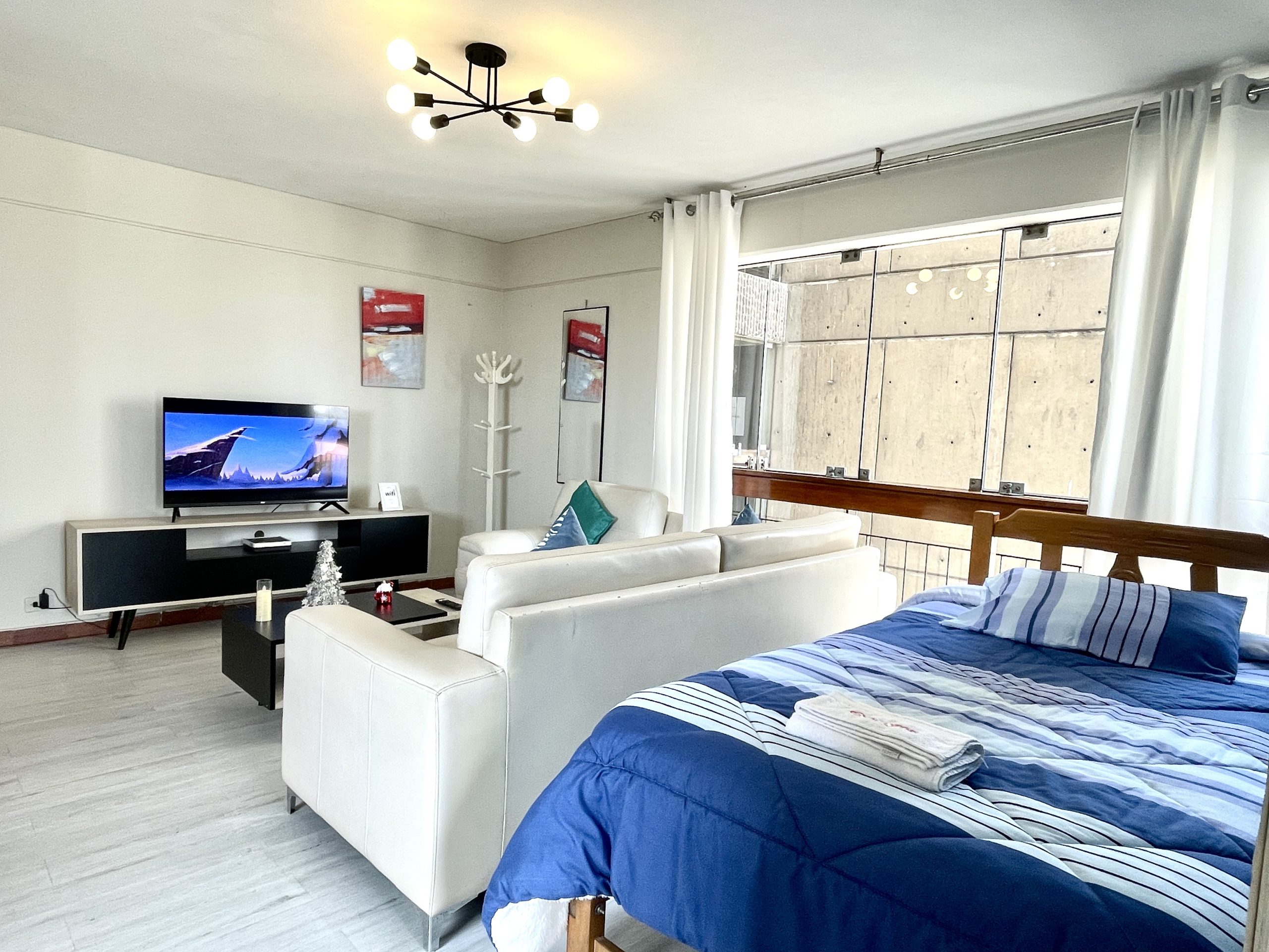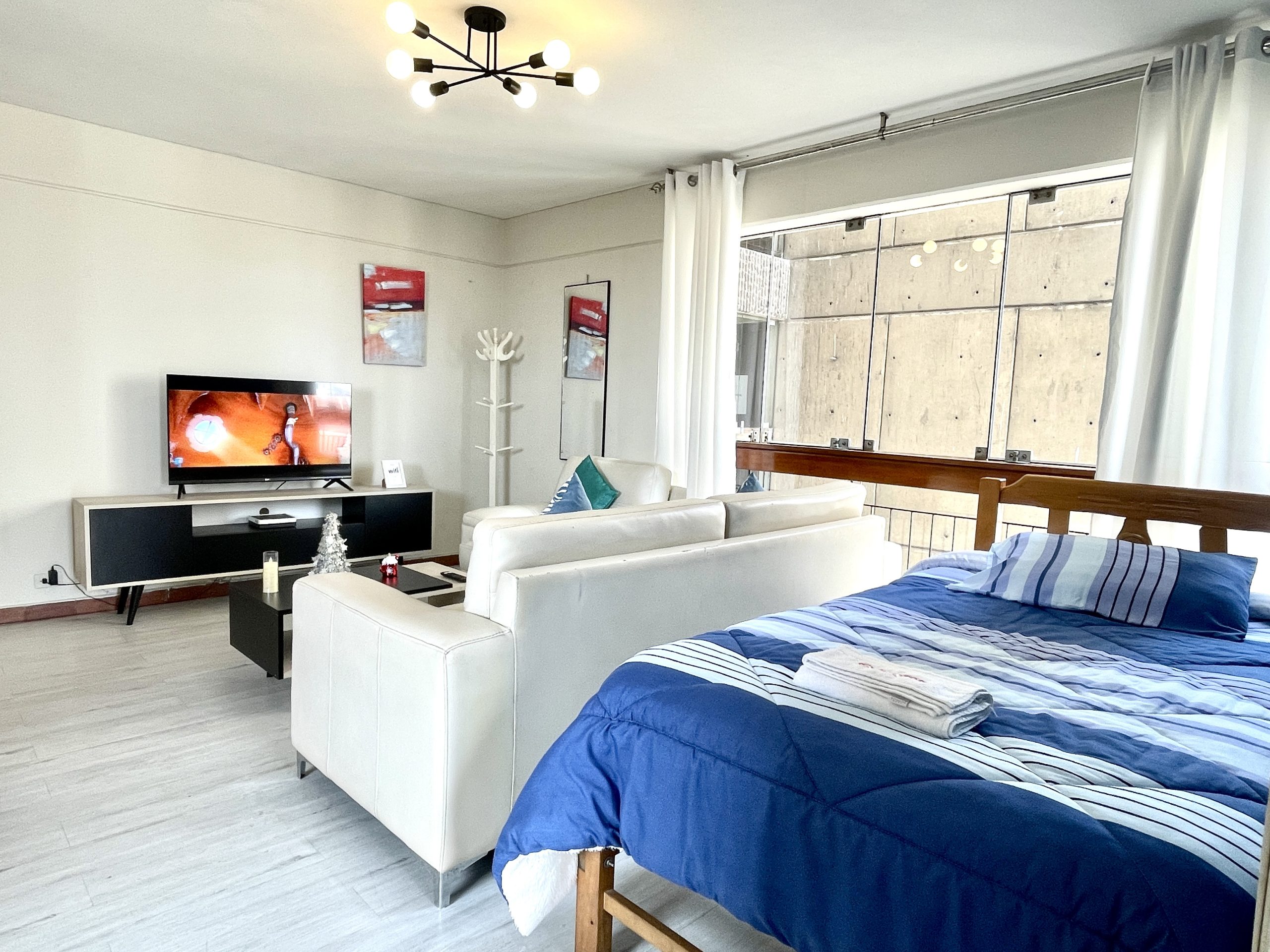 - Habitación: Cama queen y un ropero para tus pertenencias.