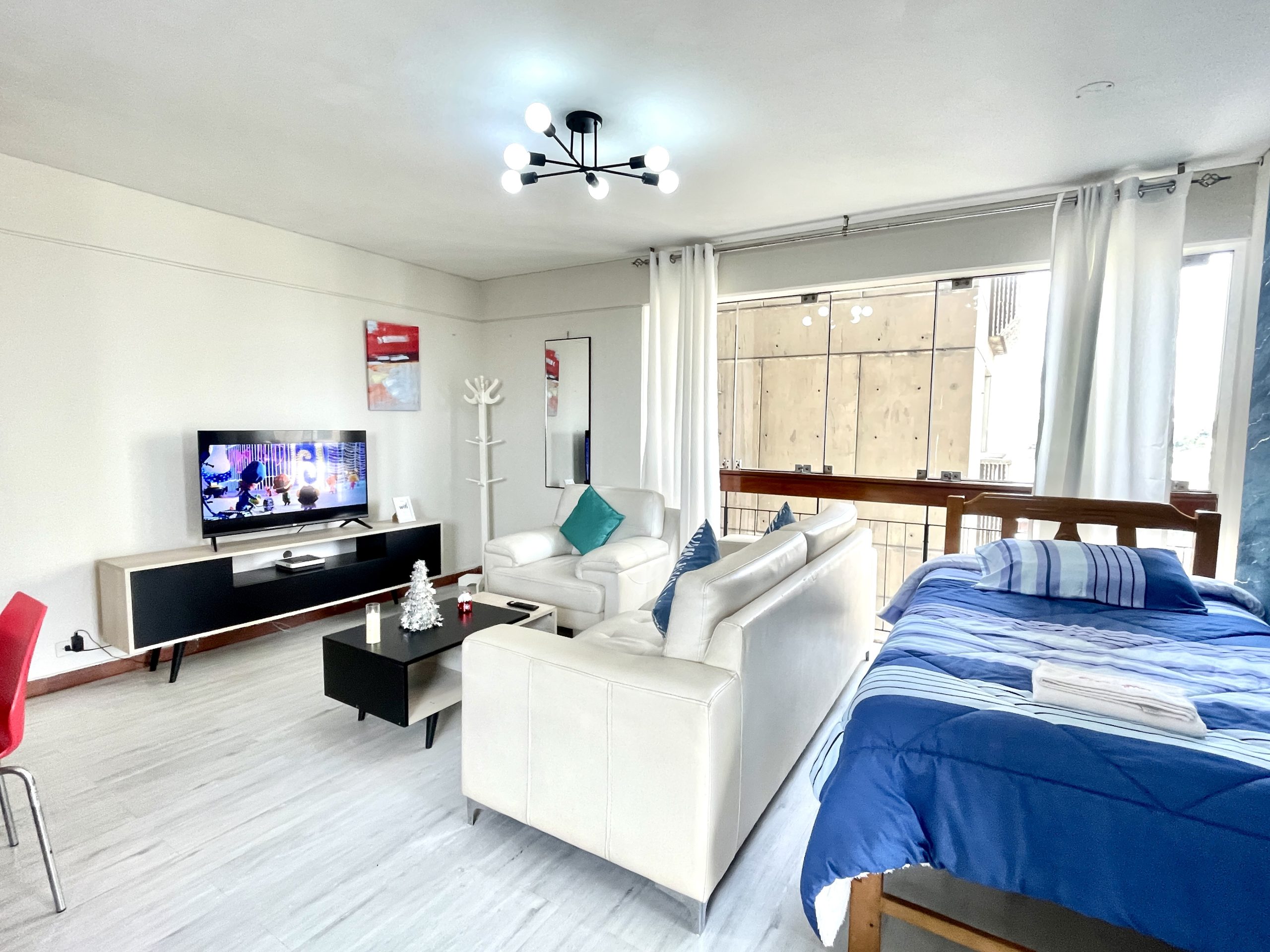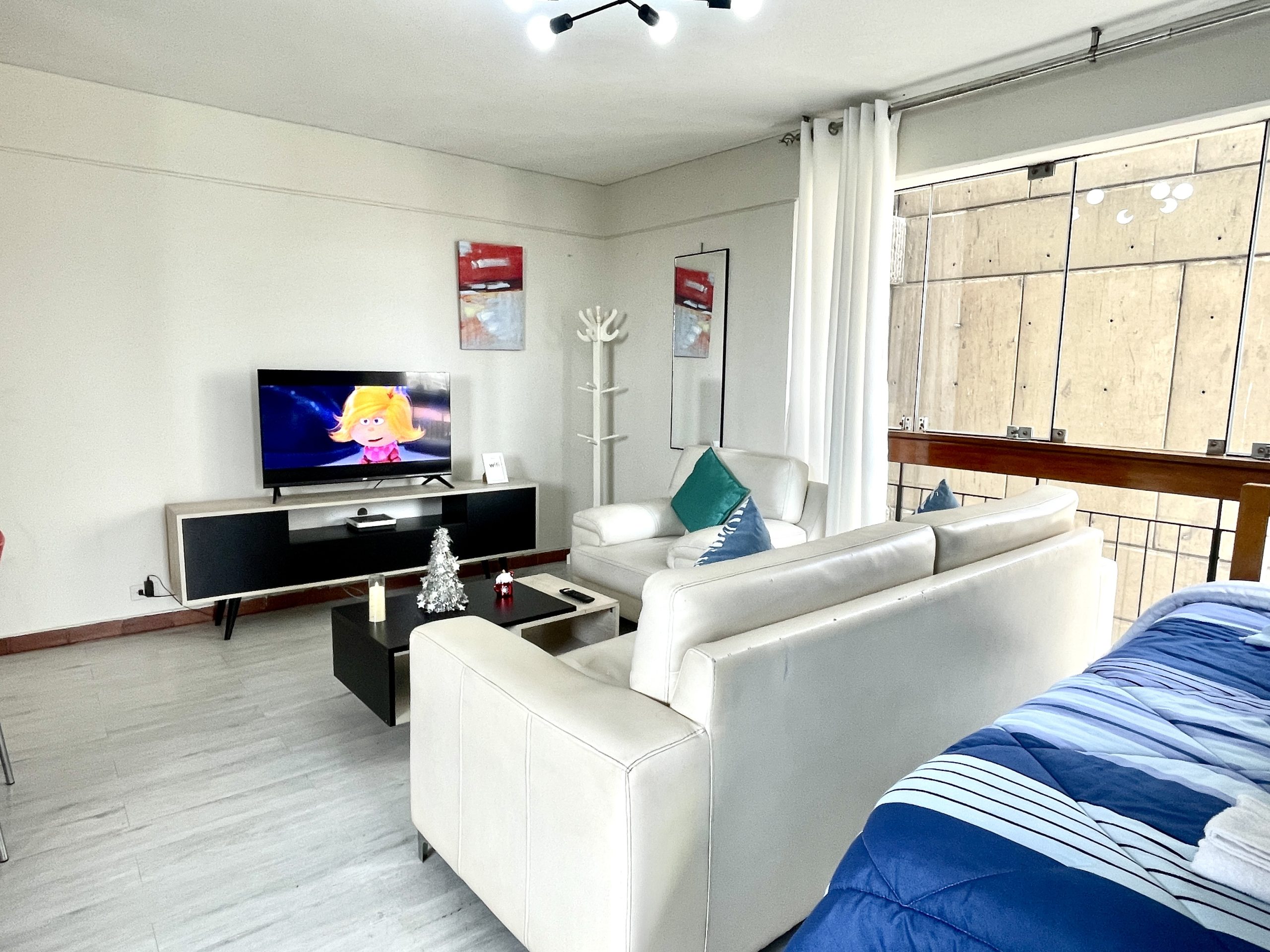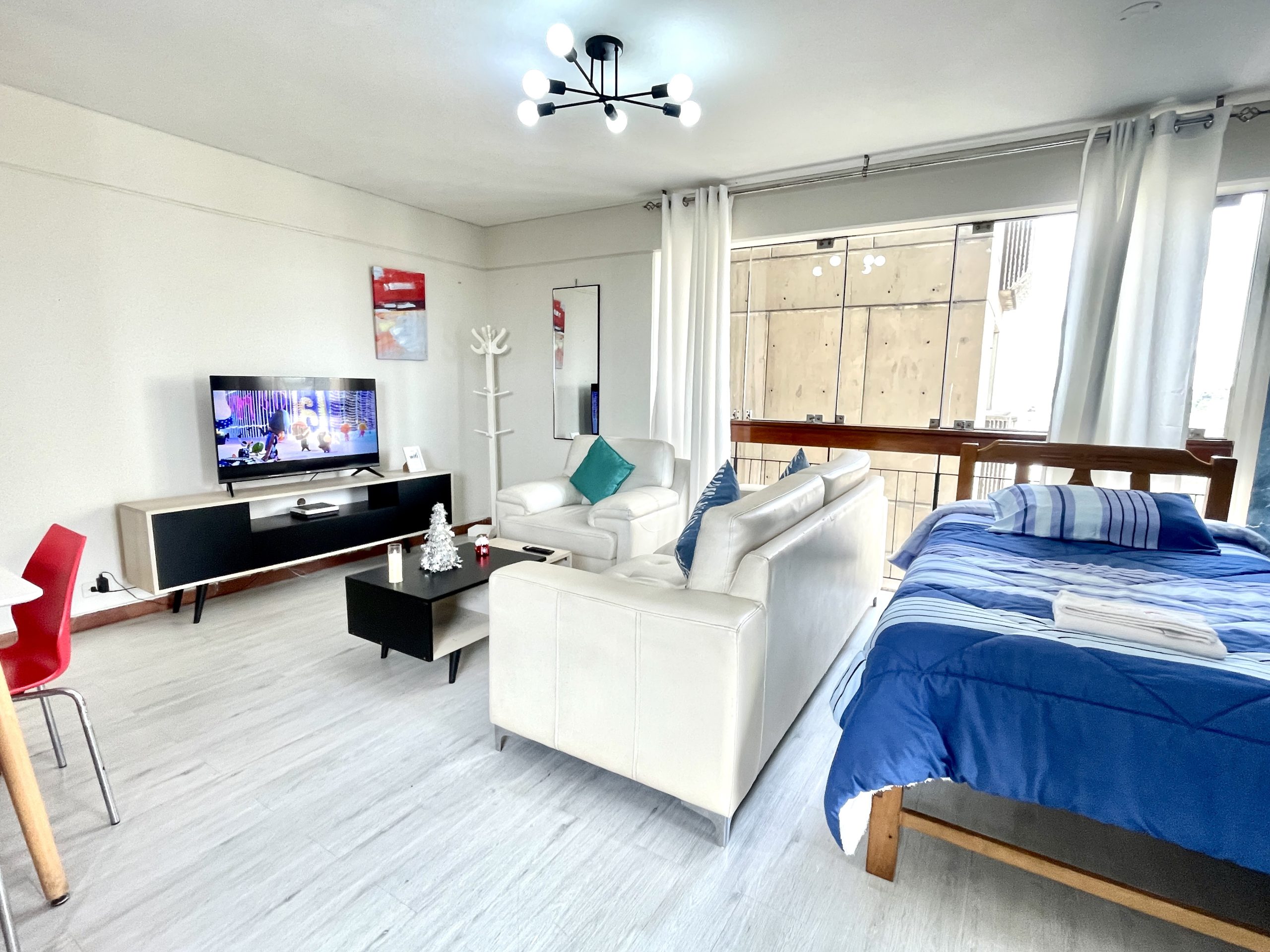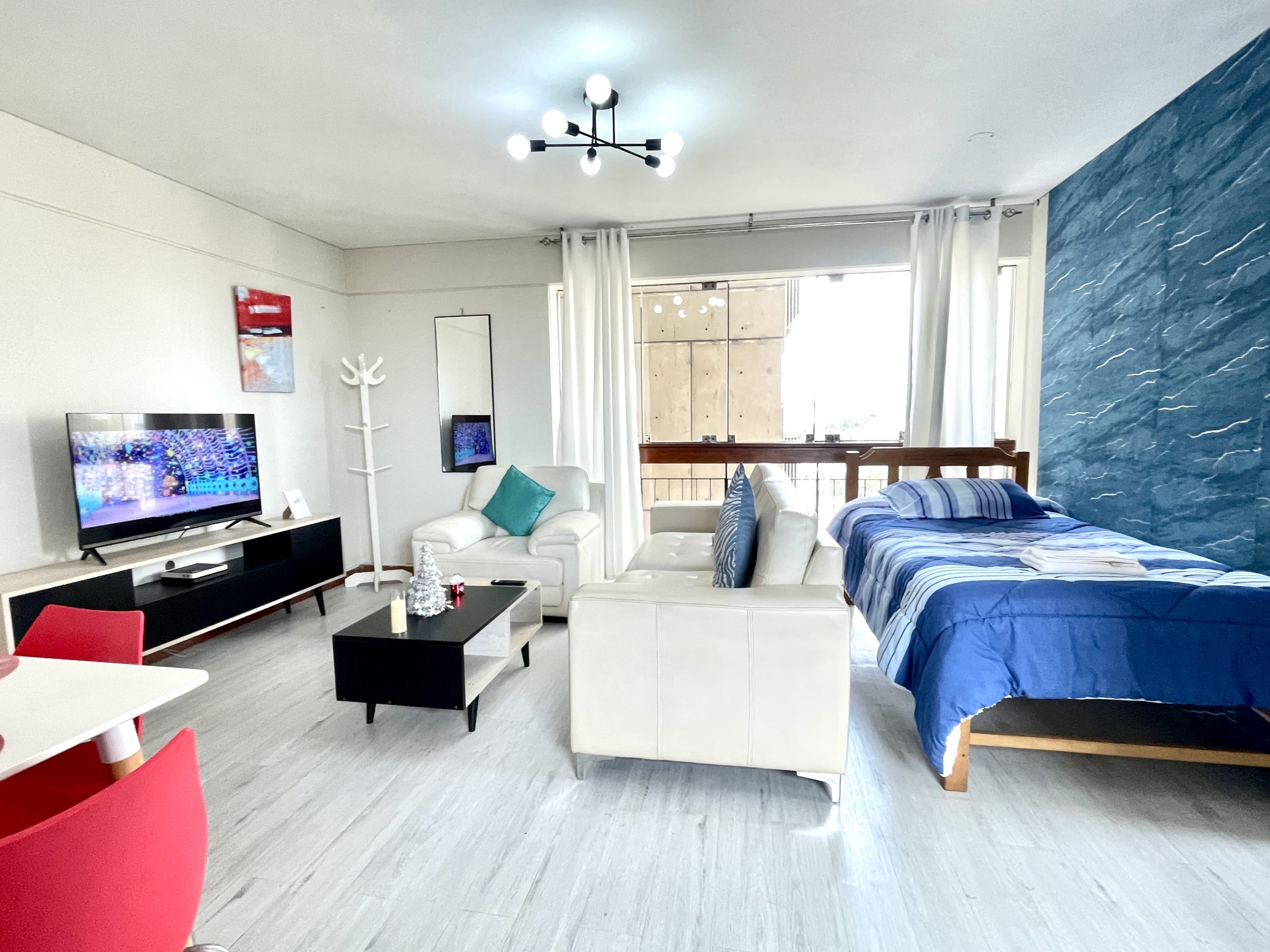- Habitación: Cama queen y un ropero para tus pertenencias.