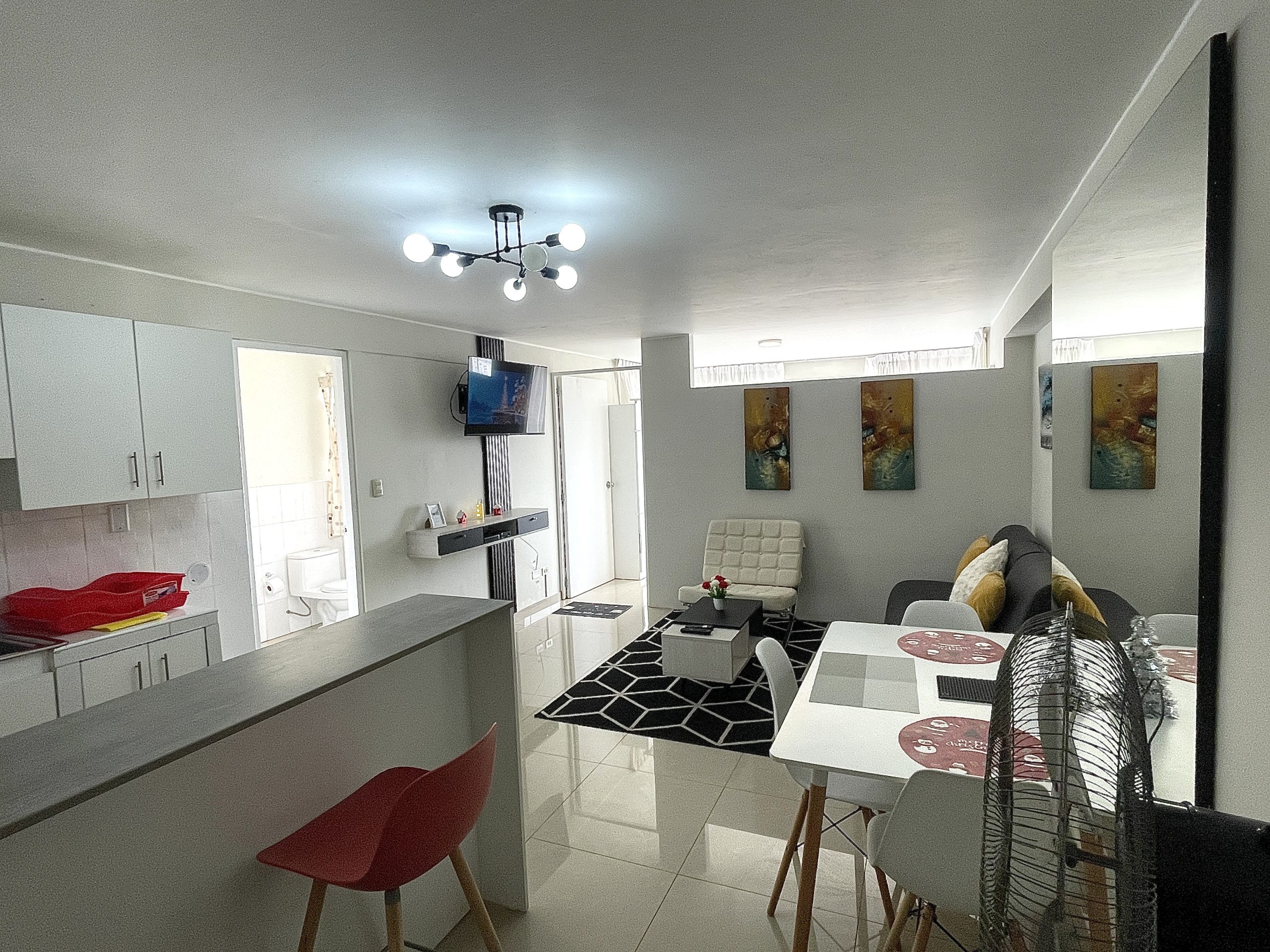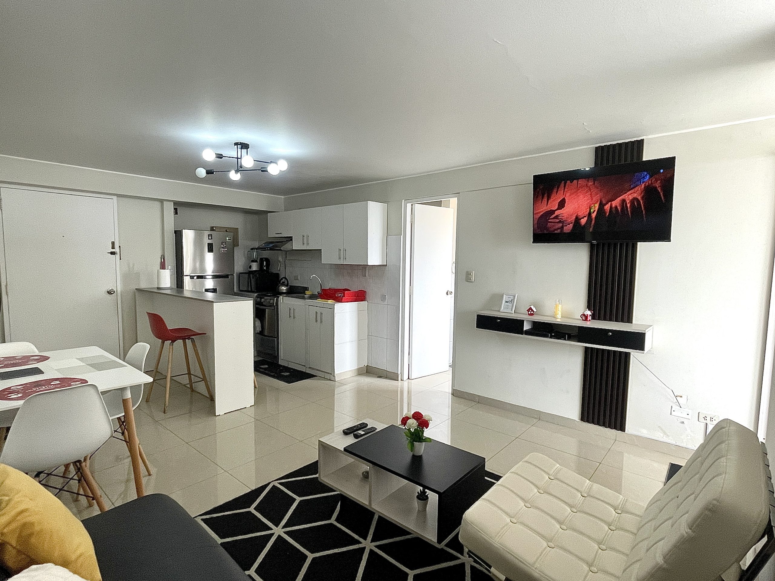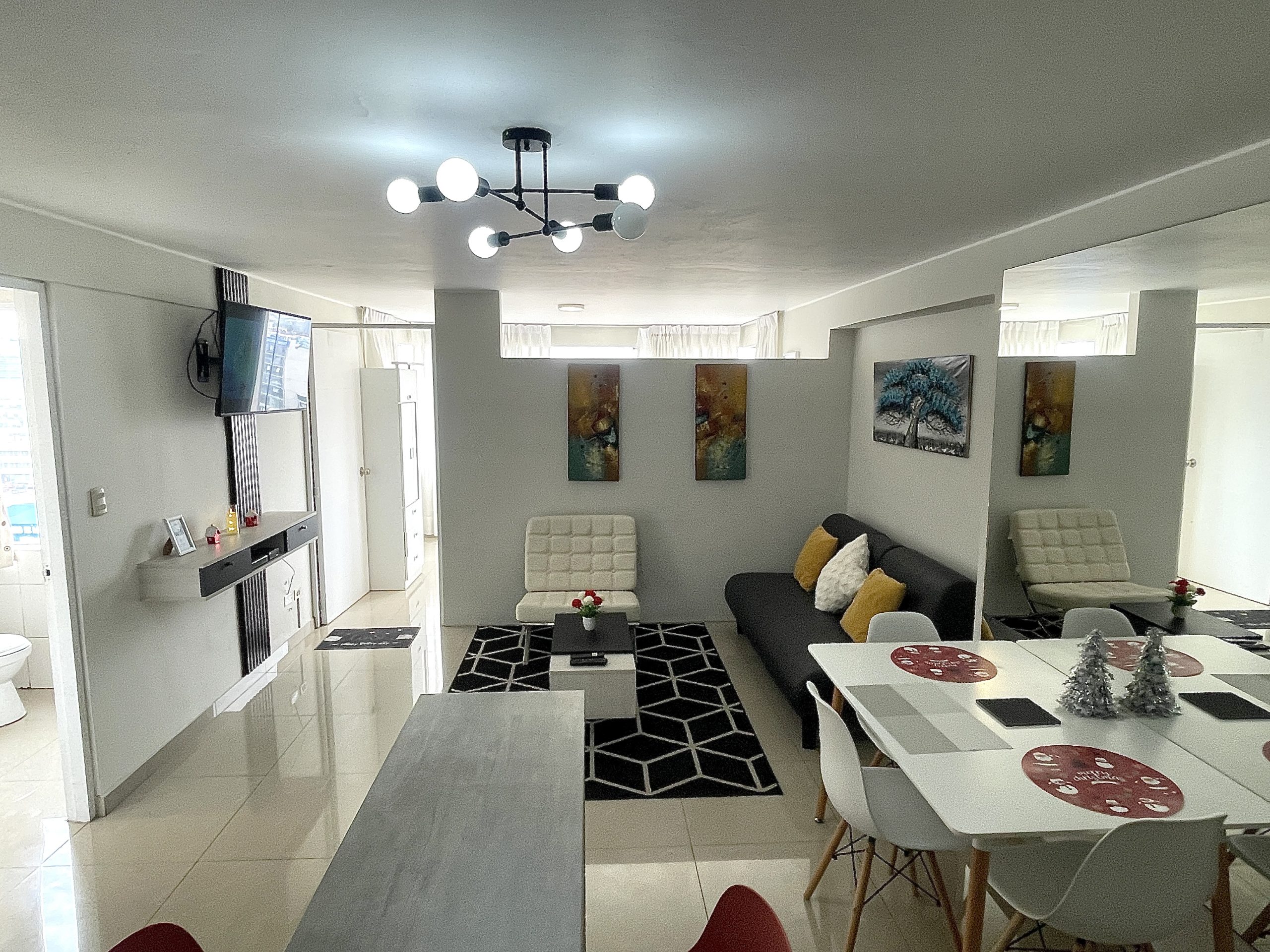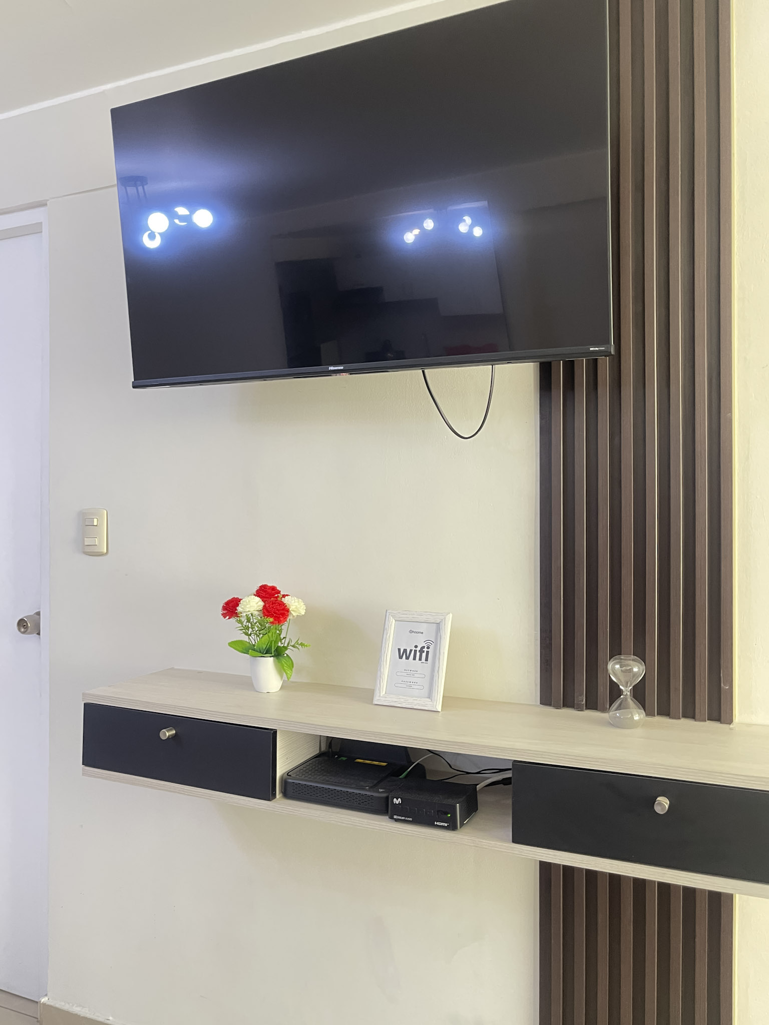 Este departamento cuenta con una cama queen, sofá cama, agua caliente, Smart TV con YouTube y Wi-Fi de alta velocidad. Todo lo necesario para que te sientas como en casa.